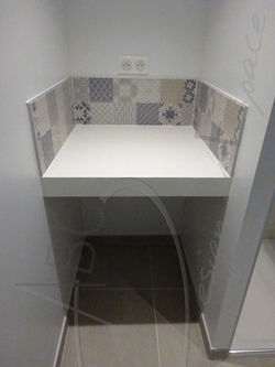 La salle de bain est restée au même endroit mais à été entièrement rénovée afin de devenir une salle d'eau plus moderne et fonctionnelle.